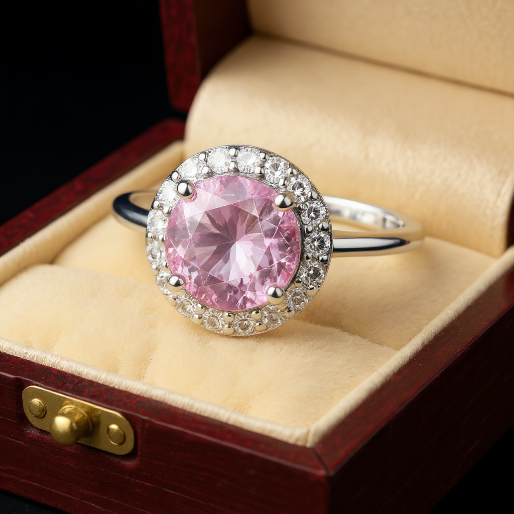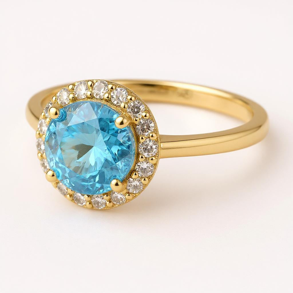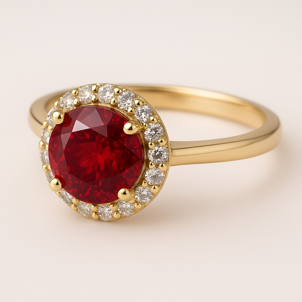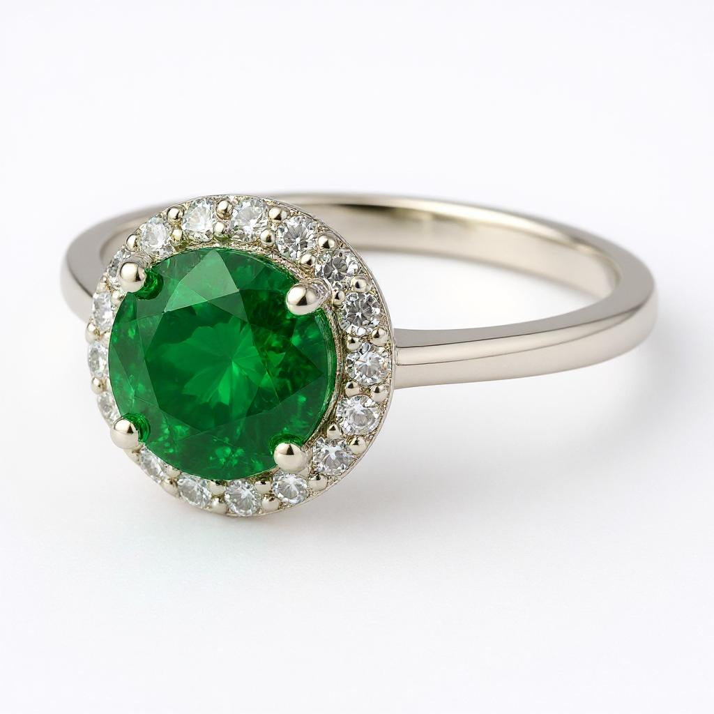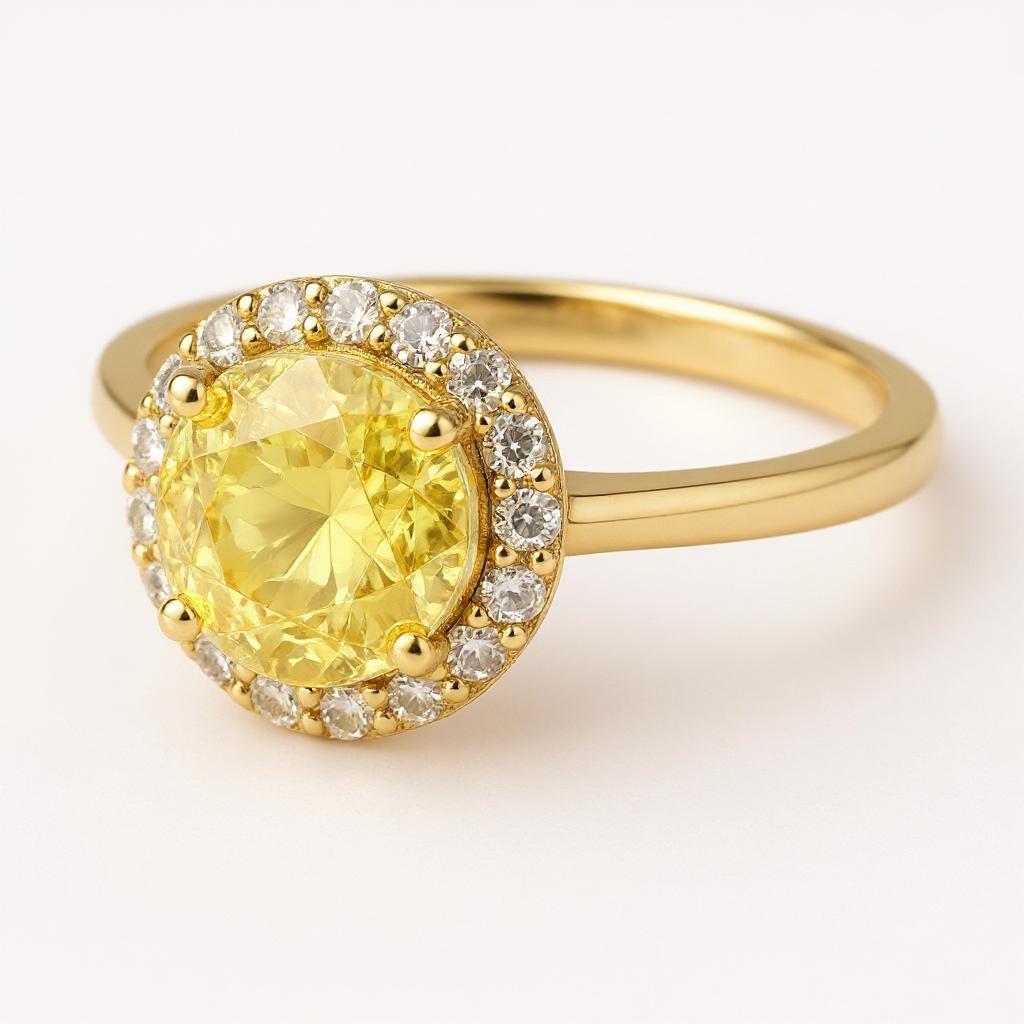 "Circle of Life" Round Portuguese Cut Ring with Halo 7mm
