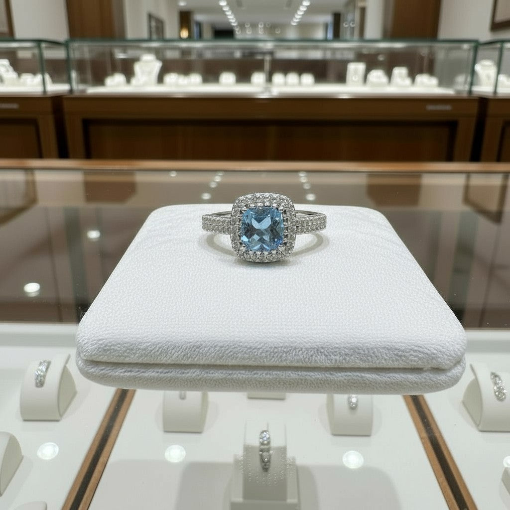 "Comforting Light" Cushion Cut w/ Cubic Zirconia Halo 6.4x6.4mm