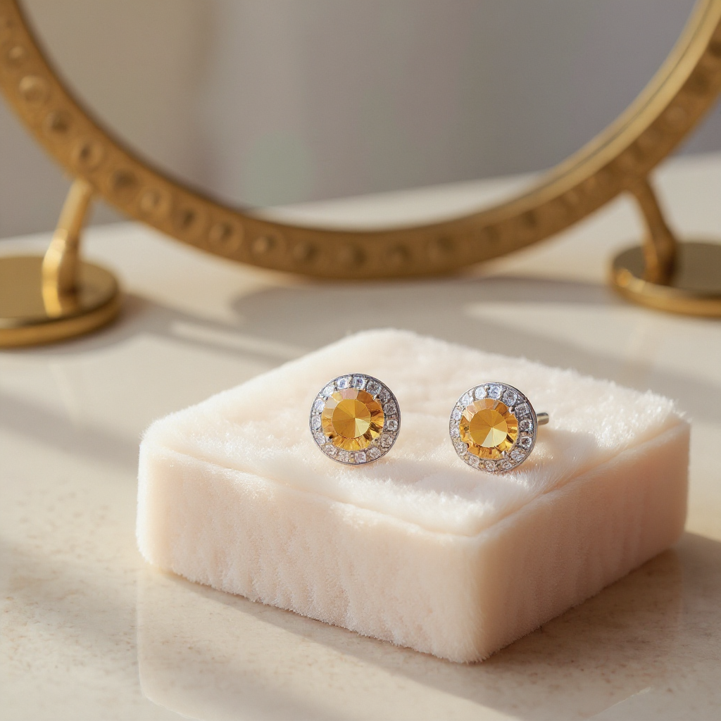 "Soothing Whispers" Portuguese Cut Pierced Earrings 5mm Sterling silver w/ CZ Halo