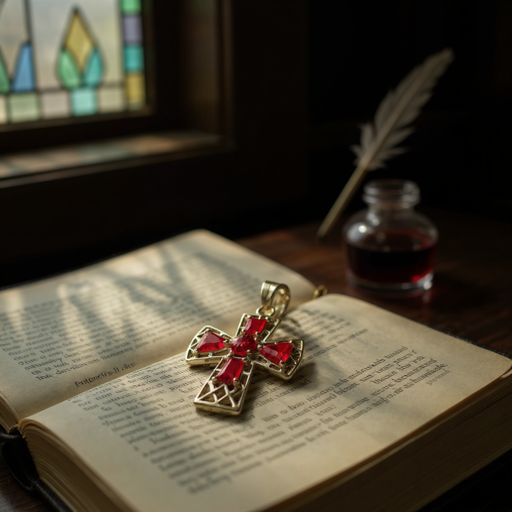 "Tranquility Cross" Pendant 5 stones, Overall size 28x22.3mm